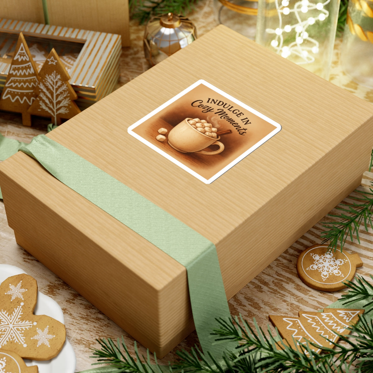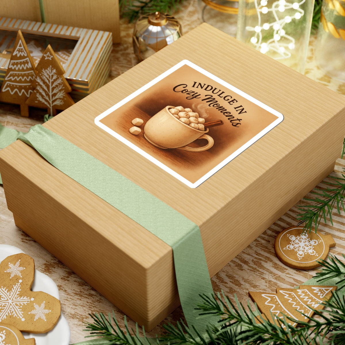 Cozy Moments Hot Cocoa Sticker — 'Indulge in Cozy Moments' Kiss-Cut Decal